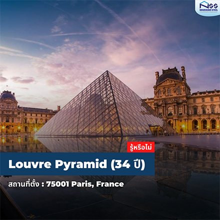 “แต่ว่า”พีระมิดแก้วของพิพิธภัณฑ์ลูฟวร์ออกแบบโดย ไอ เอ็ม เป สถาปนิกชาวจีน-อเมริกัน ก่อสร้างเสร็จสมบูรณ์เมื่อปีพ.ศ.2531 โดยสร้างขึ้นด้วยกระจกและโครงสร้างเหล็กทั้งหมด มีความสูง 21.6 เมตร ฐานมีด้านยาว 34 เมตร โดยเป็นหนึ่งในโครงการที่ริเริ่มของประธานาธิบดีฟร็องซัว มีแตร็อง เพื่อใช้สอยเป็นทางเข้าหลักของพิพิธภัณฑ์ โดยผู้เข้าชมจะต้องเข้าผ่านล็อบบี้ใต้ดิน ที่อยู่ใต้ฐานพีระมิด สรุปแล้วก็คือพีระมิดแก้วของพิพิธภัณฑ์ลูฟวร์เพิ่งสร้างเสร็จเพียง 34 ปีเท่านั้น