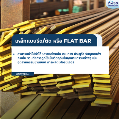 เหล็กแบน (Flat Bar) มีสองประเภทคือ เหล็กแบนรีด และเหล็กแบนตัด มีลักษณะเป็นสี่เหลี่ยมผืนผ้า มีความยาวมาตรฐาน 6 เมตร และมีหลายขนาดให้เลือก โดยมีคุณสมบัติทนแรงยืดพับได้ดี สามารถดัดเปลี่ยนรูปทรง หรือนำไปใช้สำหรับงานเชื่อมได้หลากหลายรูปแบบ