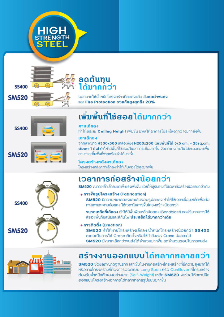 สรุปข้อดีของเหล็ก SM520 ที่ดีกว่า SS400 อย่างทิ้งฝุ่นเลยก็คือ- ประหยัดต้นทุนการก่อสร้างได้รวมกว่า 20%