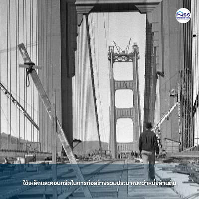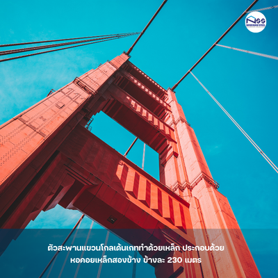 ตัวสะพานโกลเดนเกตทำด้วยเหล็ก ประกอบด้วยหอคอยเหล็กสองด้าน ด้านละ 230 เมตร
