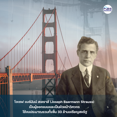ผู้ออกแบบและเป็นหัวหน้าวิศวกรในการก่อสร้างครั้งนี้คือ โจเซฟ แบร์มันน์ สเตราส์ (Joseph Baermann Strauss) และใช้งบประมาณในก่อสร้างสะพานรวมทั้งสิ้นกว่า 33 ล้านเหรียญสหรัฐ