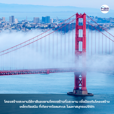 โครงสร้างสะพานได้ทาสีแดงตามโครงสร้างทั่วทั้งสะพาน เพื่อป้องกันโครงสร้างเหล็กเกิดสนิมที่เกิดจากไอลมทะเลในมหาสมุทรแปซิฟิก