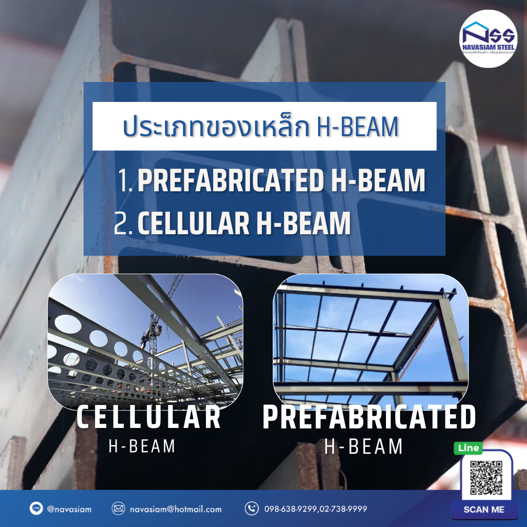 และนอกจากเหล็ก H-Beam ทั่วไปแล้ว ยังมีเหล็ก H-Beam อีก 2 ประเภทที่น่าสนใจ คือ Prefabricated H-Beam และ Cellular H-Beam ซึ่งมีคุณสมบัติและการใช้งานที่แตกต่างกันออกไป